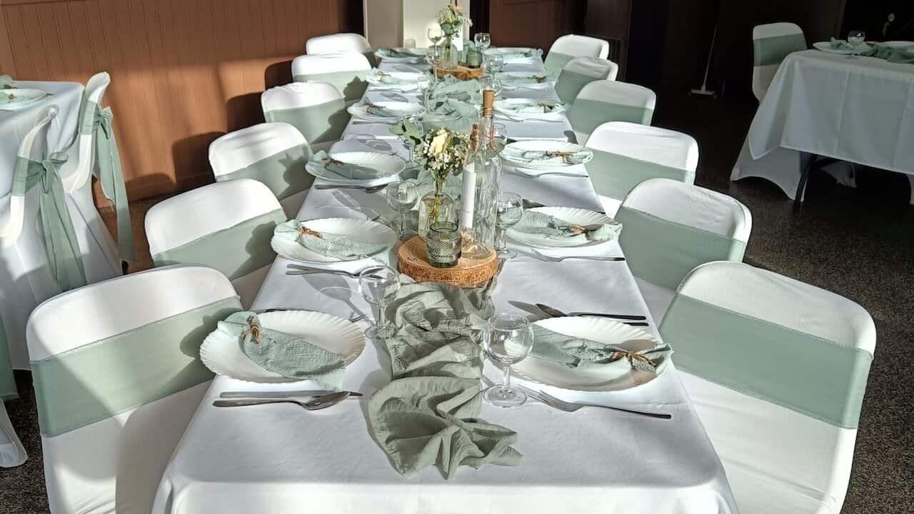 Pour le nappage, que ce soit les nappes rondes ou rectangulaires, les chemins de table, housses et nœuds de chaise, ainsi que les serviettes, le matériel vous est fourni propre, repassé et prêt à poser afin de garantir une installation simple, rapide et soignée.