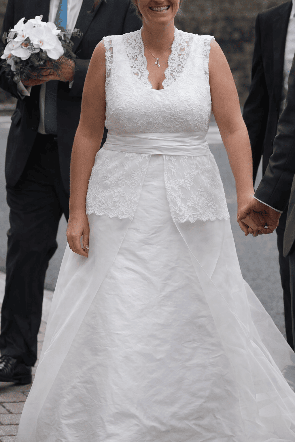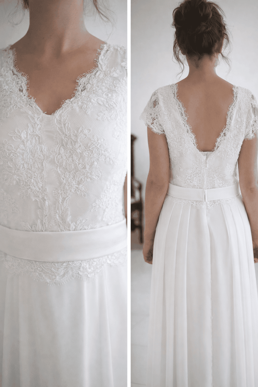 Le travail des belles matières occupe également une place importante dans mes créations. Lorsque le projet s’y prête, j’aime intégrer la dentelle de Calais, symbole du savoir-faire textile de notre région et de l’élégance intemporelle associée au mariage.