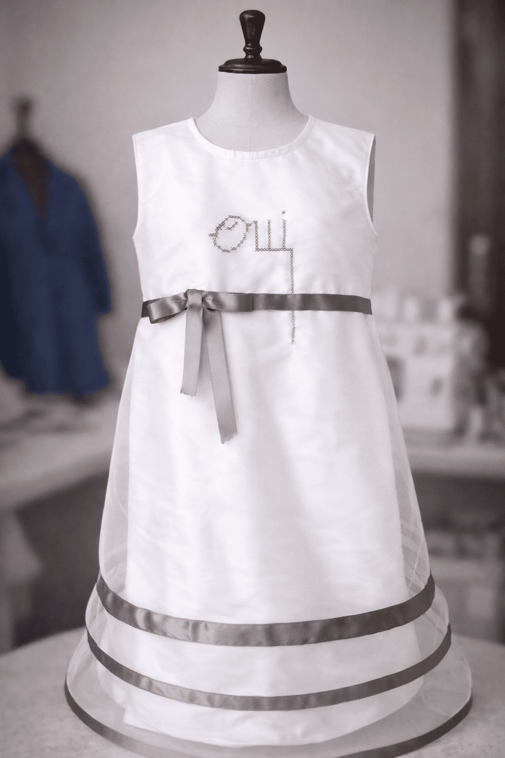 J’accompagne également la réalisation des tenues du cortège : robes de demoiselles d’honneur, robes d’enfants d’honneur, accessoires coordonnés ou pièces pour les mamans.